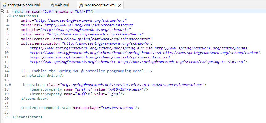 servlet-context.xml에서 <beans>로 dao, service 객체를 만들지 않고 controller에서 바로 객체 생성 후 매핑되도록 할 수 있다.