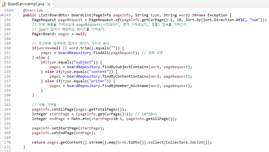 Repository에 검색 함수를 설정해놓으면 해당하는 검색어의 페이지도 알아서 가져온다.