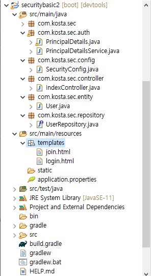 spring 프로젝트는 보통 jsp대신 프로젝트 기본 구조가 thymeleaf