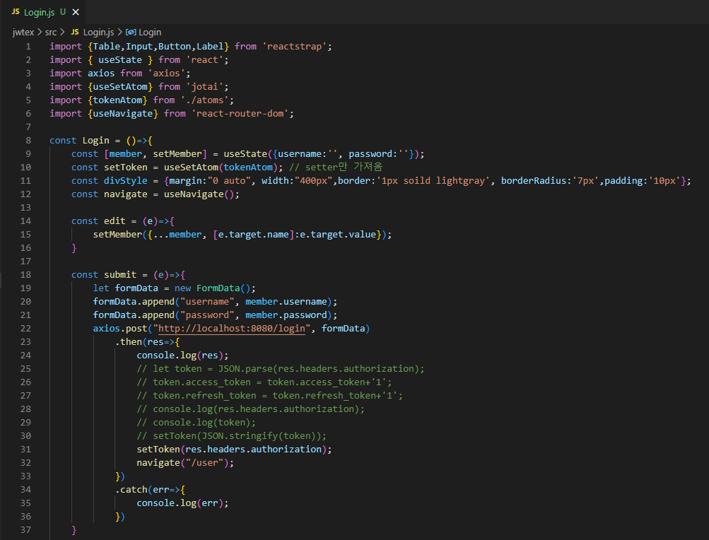 백앤드에서 token을 받아올 변수
