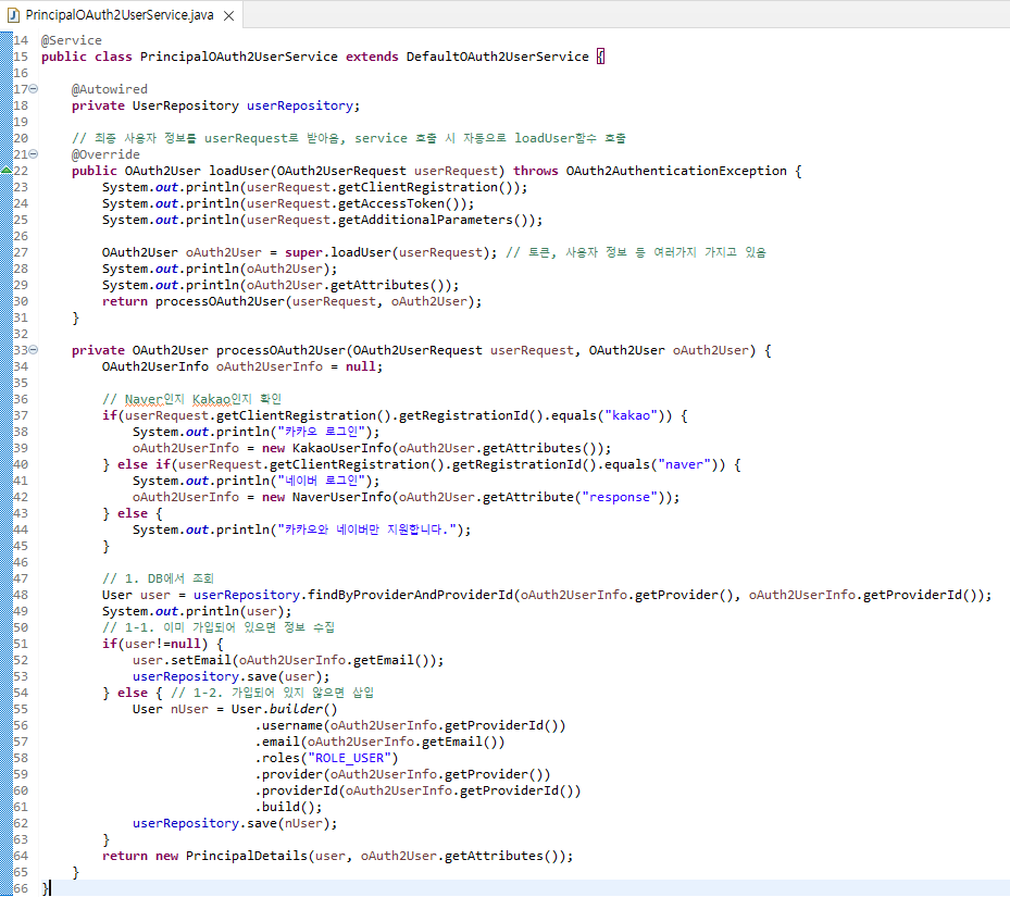 소셜 로그인이면 해당 클래스로 요청이 들어오게 된다.
