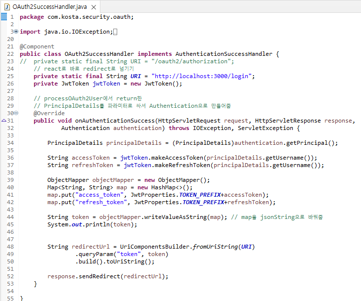 OAuth2SuccessHandler 클래스 추가