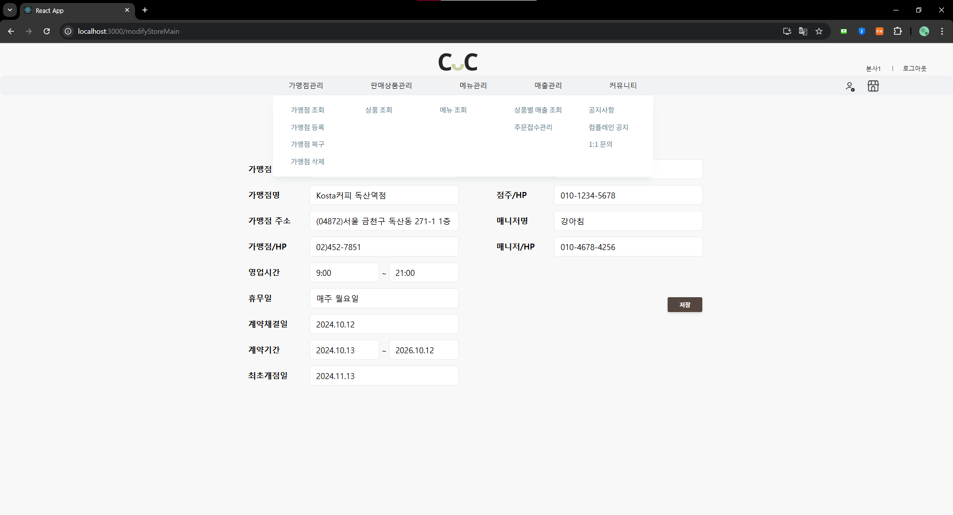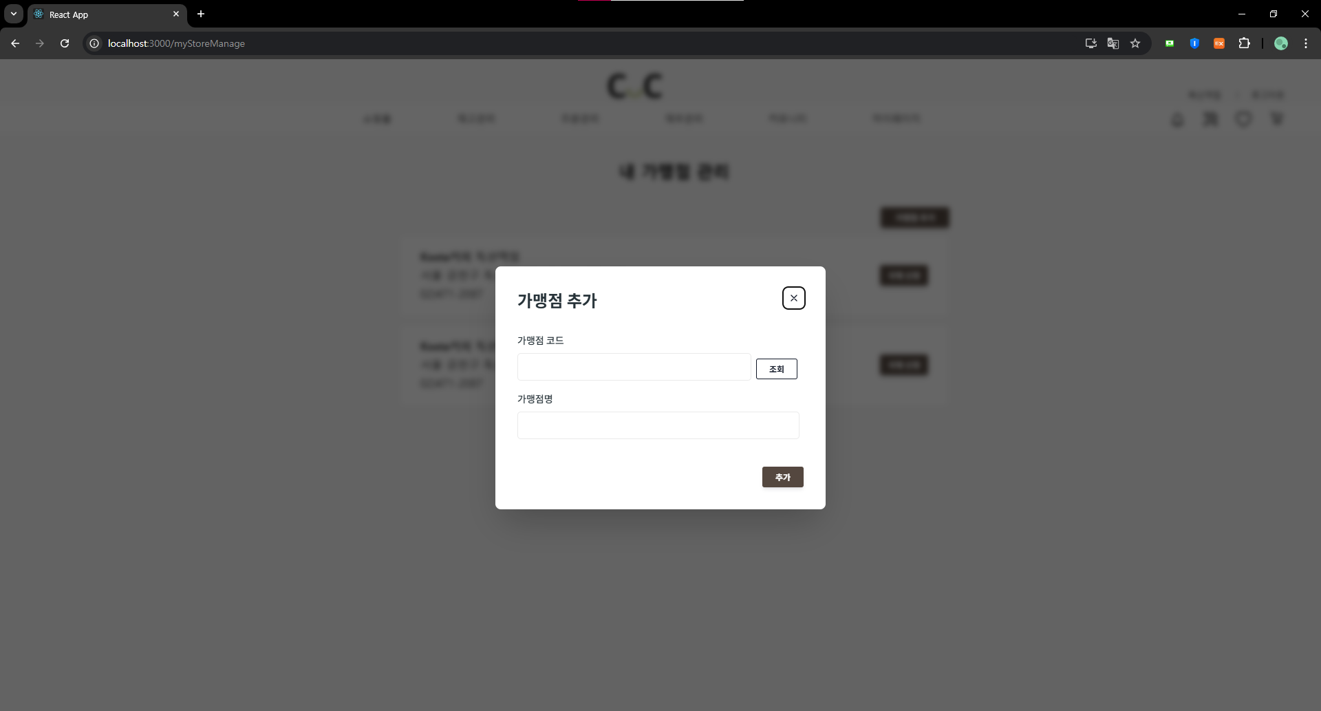 가맹점 추가 모달