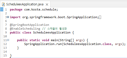 스케줄러 사용하려면 main이 있는 클래스에 @EnableScheduling 추가