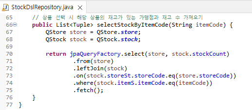 storeCode가 같은 행은 stockCount를 합쳐서 보내주고 싶음