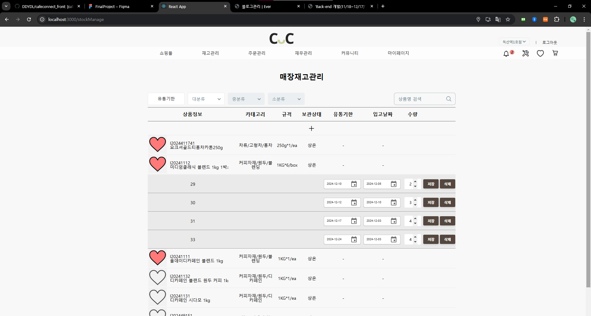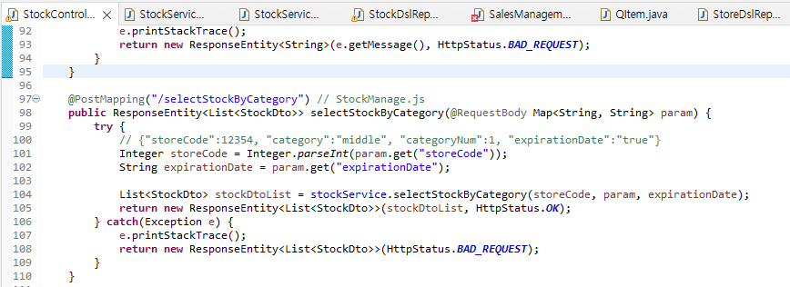 유통기한은 함수를 따로 만들어주어 expirationDate에 한 글자라도 넘어오면 stock의 유통기한과 현재 날짜를 빼서 3일 이하이면 쿼리문에 걸리도록 설정했고