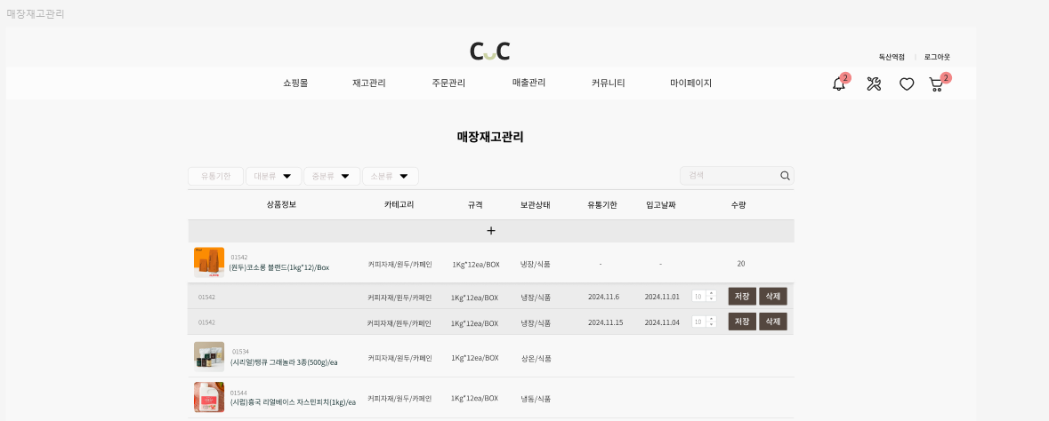 유통기한과 대/중/소분류를 and 연산해서 Stock List를 가져와야 함.