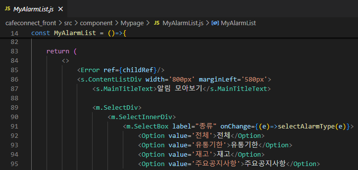 처음에 useEffect로 active한 가맹점 리스트를 모두 가져옴
