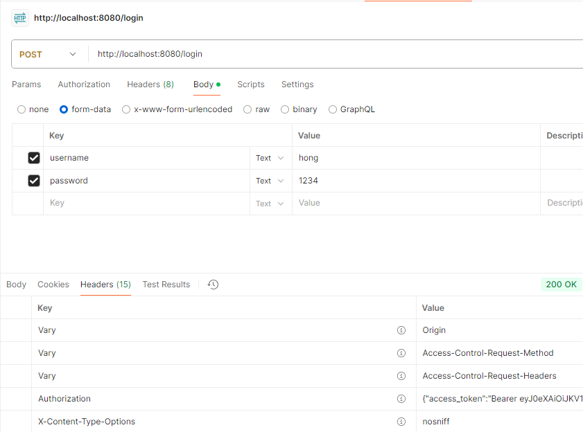 postman에서 태스트한 결과도 token이 헤더로 잘 들어옴