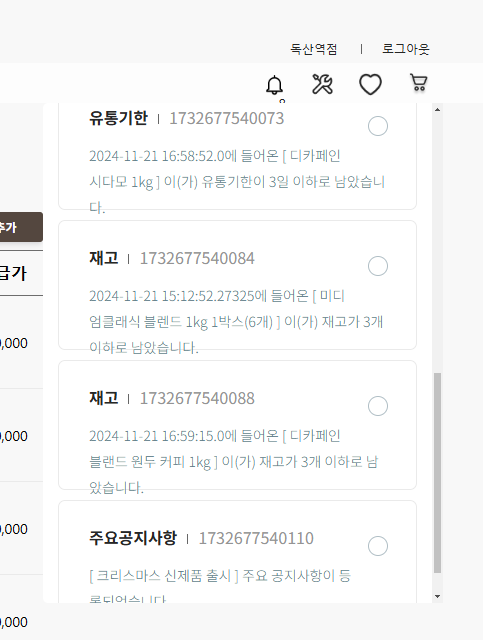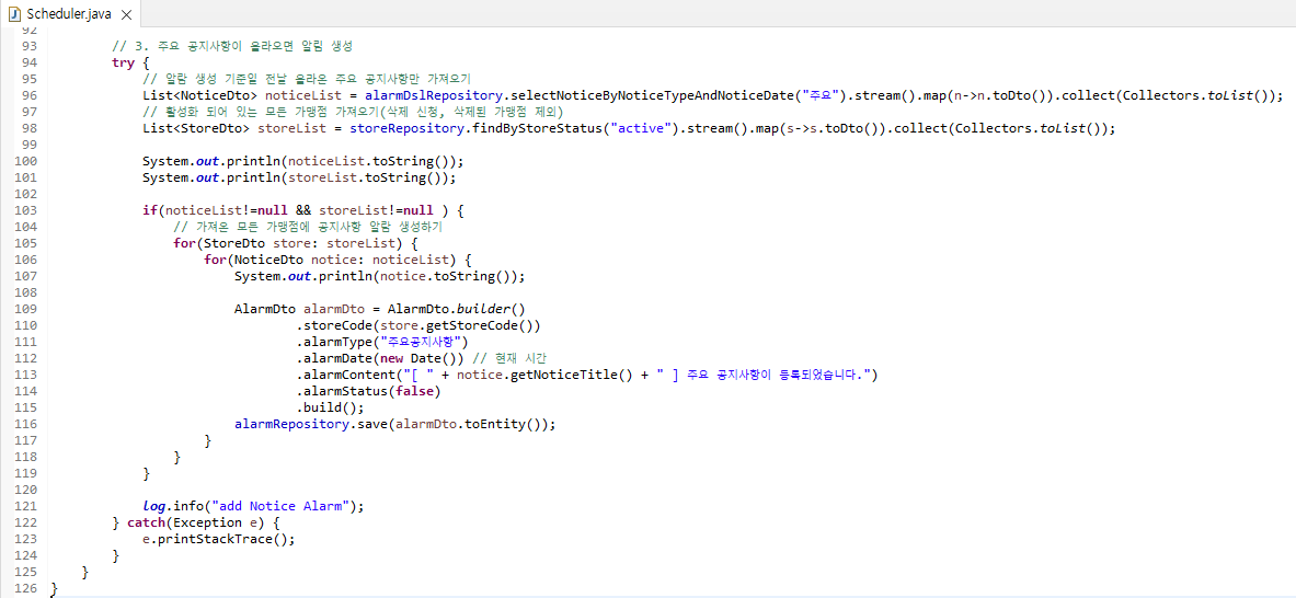 3. 주요 공지사항 등록 시 활성화되어 있는 모든 가맹점에 대한 알람 생성