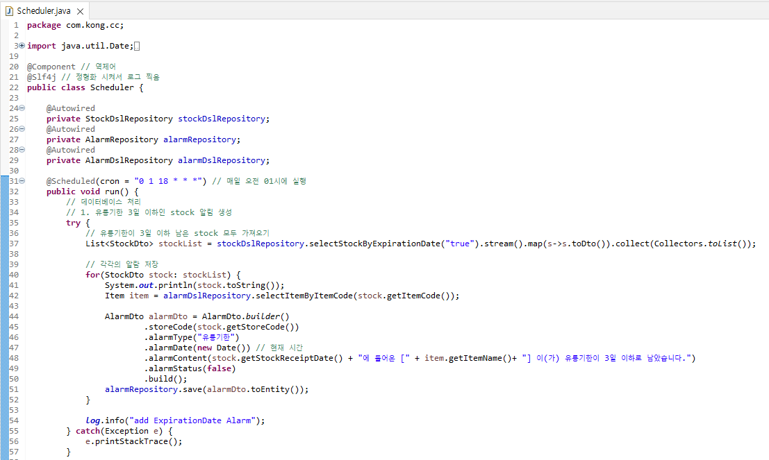 1. 유통기한이 3일 이하 남은 stock에 대한 알람 생성