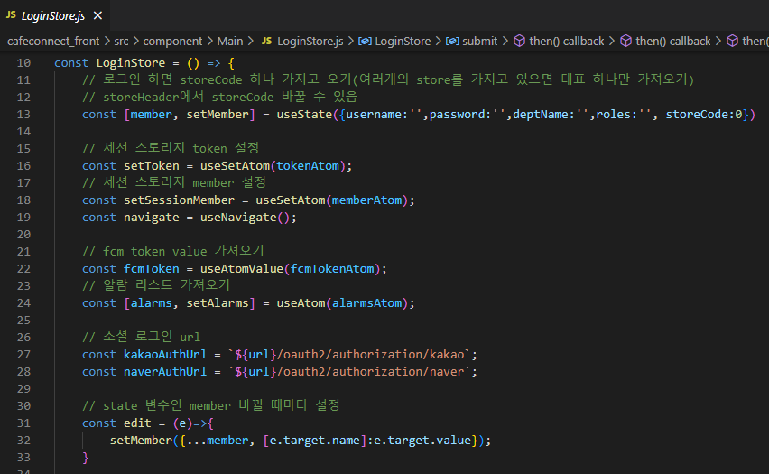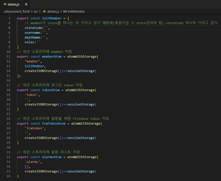 3. 사용자 정보 요청 성공 시 Jotai에 member 저장, fcm token 요청(firebase 사용)